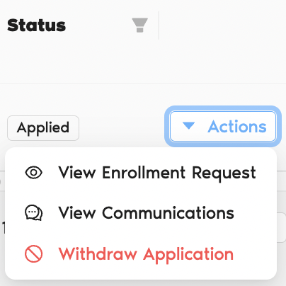 In the Enrollment page, you will be able to review your application status once it has been submitted.