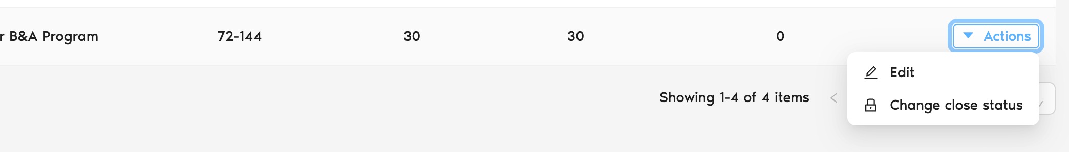 2. Select the program you wish to close for new enrollment.