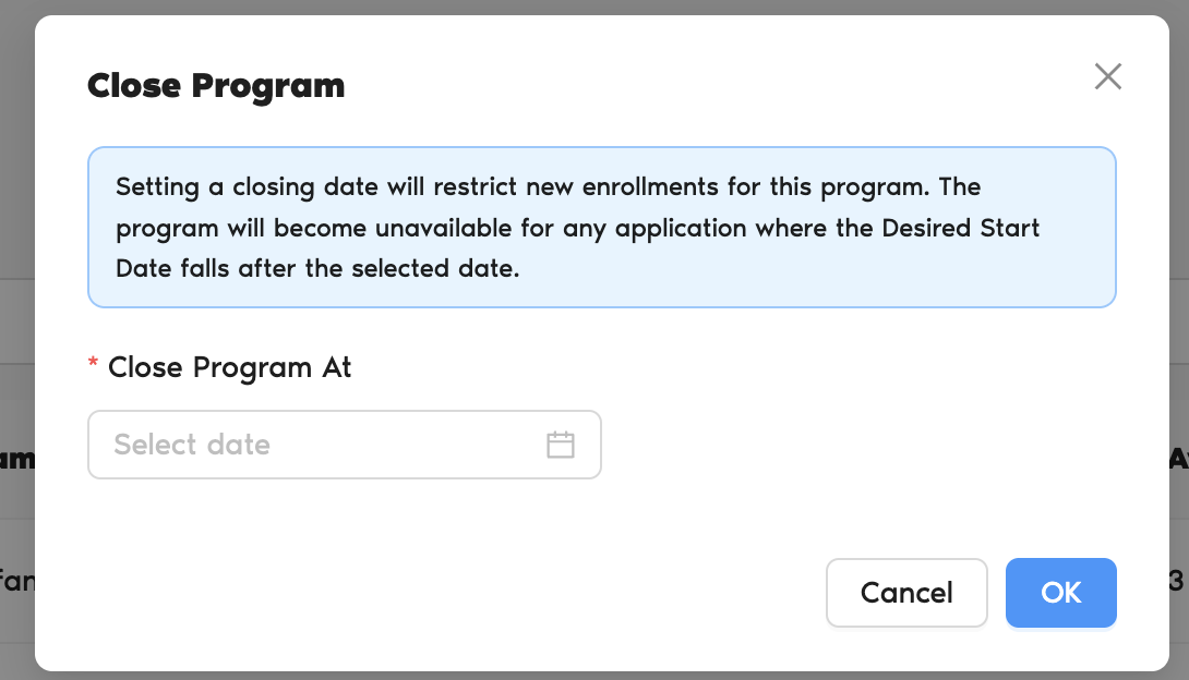 5. Select the date you want to close the program for new enrollment.